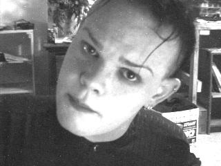 Loves: Kitties, Puppies, Fuzzy Friendies, Musik, Smoking (tobacco you fucking hippies), Chewin (food you fucking rednecks), Himself, Smelling good, Shoes, Hair Chandeliers, Ghetto Goth Talk (i.e. FiZelds of The Nizephilim, (DARKSIIIIDE!), Make up, Mullets, Brian... and other stuff not mentioned